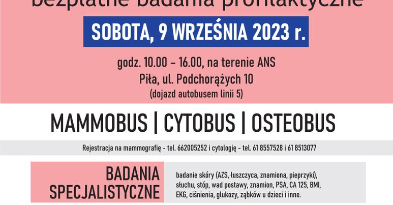 - cytologia - dla Pań 25-59 lat, zapisy pod numerem telefonu 61 8557528, 61 8513077,