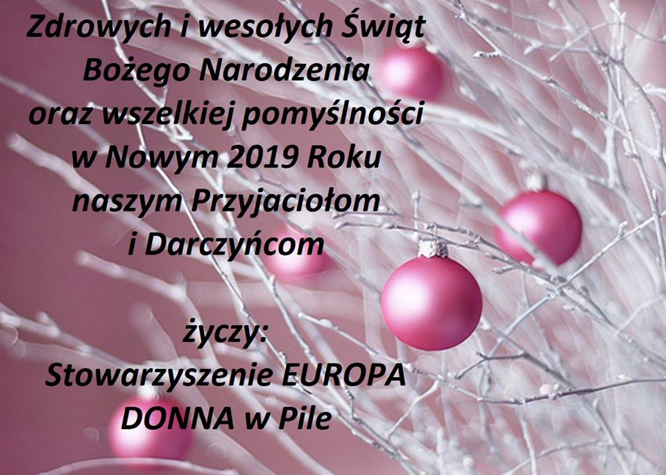 Zdrowych i wesołych Świąt Bożego Narodzenia oraz wszelkiej pomyślności w Nowym Roku naszym Przyjaciołom i Darczyńcom życzy Europa Donna w Pile